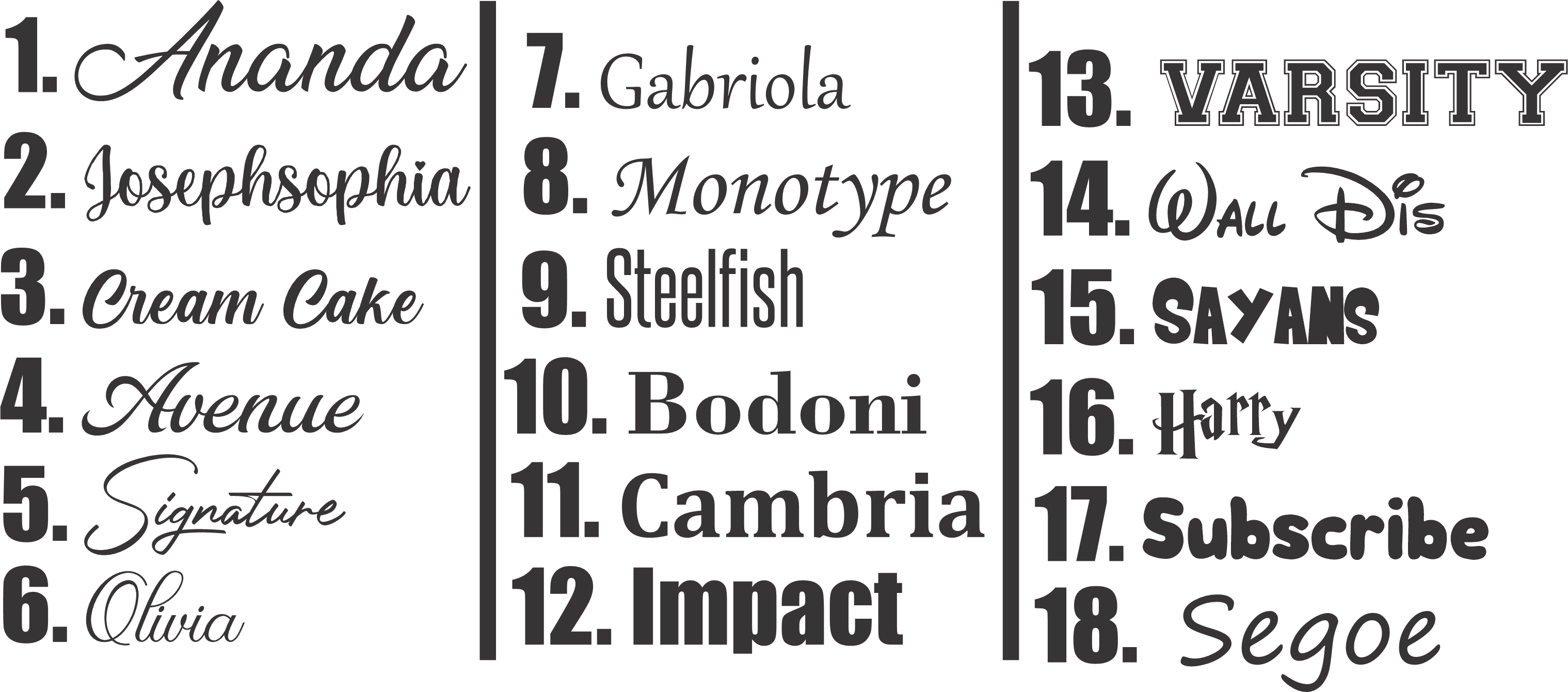 TIPOGRAFIAS DISPONIBLES: